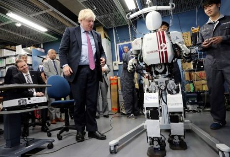 Johnson, kicking off a trip to Japan, visited the robotic centre at Waseda University, which works closely with Britain’s University of Birmingham on robotic technologies.
