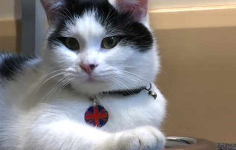 Lawrence of Abdoun, a cat rescued from the streets of Jordan, has been appointed “Chief Mouse Catcher” at the British embassy in Amman. The furry feline has gained a considerable Twitter following within just weeks of its appointment.(from Reuters video)