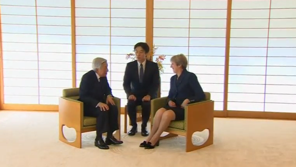 TOKYO, Japan (Reuters) — British Prime Minister Theresa May met with Japanese emperor Akihito at the imperial palace on Friday (September 1) on the last day of her three-day visit to Japan.