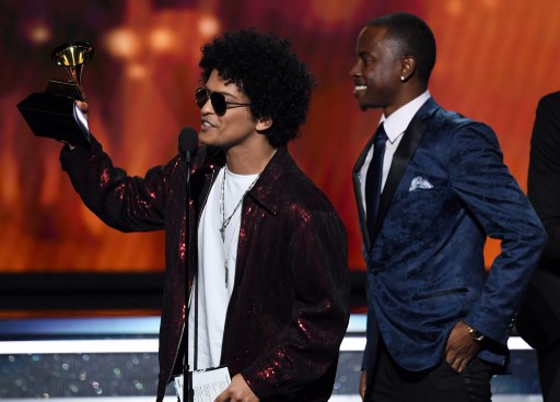NEW YORK, United States (AFP) — Bruno Mars on Sunday won the Grammy for Record of the Year for his party anthem “24K Magic,” the first time the funk revivalist has won the US industry’s award for top song on his own.