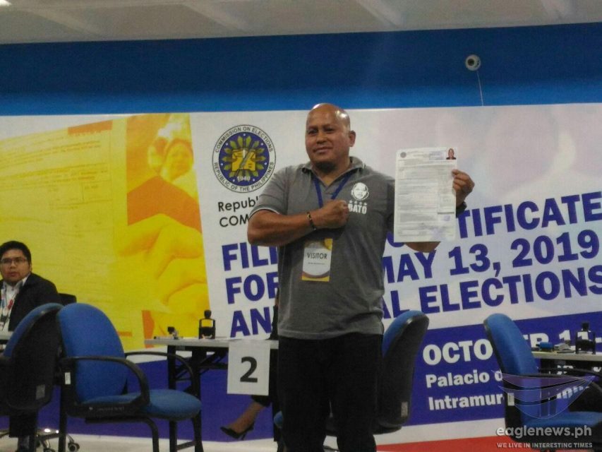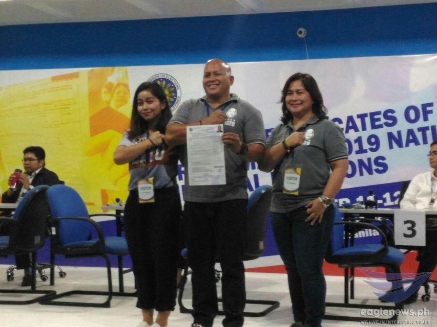 (Eagle News) — Bureau of Corrections chief and former Philippine National Police Director Ronaldo “Bato” dela Rosa filed his certificate of candidacy with the Commission on Elections (COMELEC) office on Friday morning, Oct. 12, 2018.