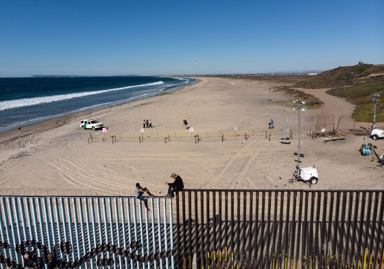 Large groups of migrants have been gathering on the beach at the border fence that separates Mexico from California, shouting “We’re not criminals!” in a pointed message to Trump.