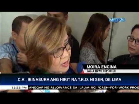 In a resolution dated February 10, the CA Special Sixth Division refused to issue a temporary restraining order (TRO) or preliminary injunction in favor of De Lima.