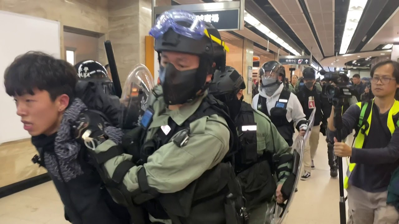 AFP reporters in a Sha Tin mall saw a secondary school girl and a 16-year-old boy arrested, the pair shouting out their details as officers led them away.