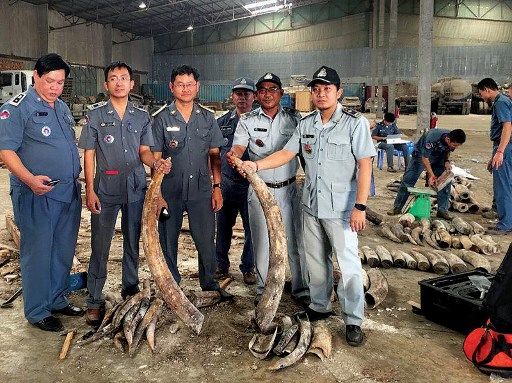 Nearly 280 pieces of ivory — full and partial elephant tusks — were found in the container at the southwestern port of Sihanoukville after sitting there for a year.