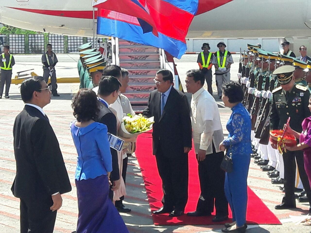 Cambodian Prime Minister Hun Sen arrives in Manila at the Ninoy Aquino International Airport (NAIA) Terminal 2 to participate in the forthcoming 30th Association of Southeast Asian Nations (ASEAN) Summit on April 29, 2017.