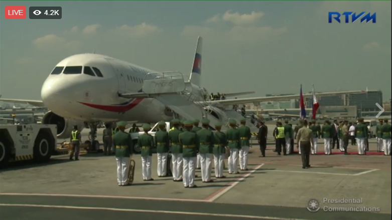 Cambodian Prime Minister Hun Sen has arrived in Manila at the Ninoy Aquino International Airport (NAIA) Terminal 2 to participate in the forthcoming 30th Association of Southeast Asian Nations (ASEAN) Summit on April 29, 2017.