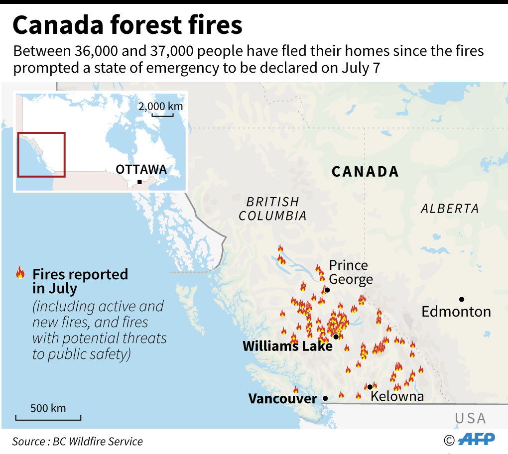 The inferno’s progress prompted authorities to take new emergency measures, ordering the evacuation of 24,000 people in the region including the town of Williams Lake which is home to some 11,000 people, reported public broadcaster CBC.