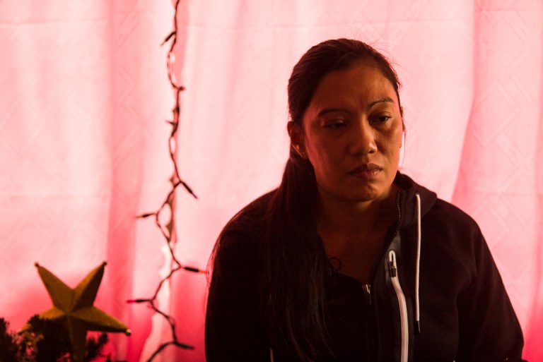 In this photo taken on December 13, 2016, Vanessa Rodel from the Philippines, 46, a refugee who helped shelter fugitive whistleblower Edward Snowden in 2013, reacts during an interview with AFP in her living room in Hong Kong. – The story of how impoverished refugees helped fugitive whistleblower Edward Snowden evade authorities in 2013 only emerged in September, propelling them into the media spotlight. After leaving his initial hotel bolthole, he went underground, fed and looked after by some of the city’s 11,000 marginalised refugees. Snowden now lives in exile in Russia where he has sought asylum. The refugees remain in Hong Kong, desperately hoping for resettlement elsewhere. (Photo by Anthony WALLACE / AFP)