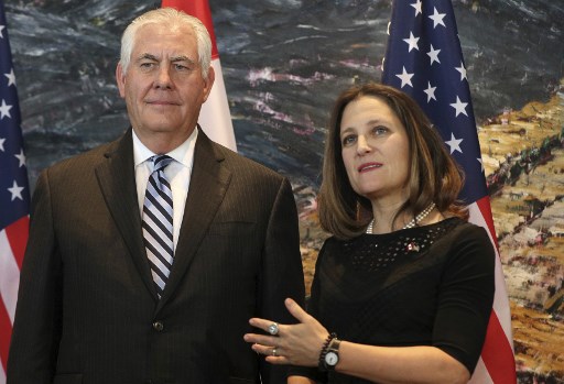 “We believe a diplomatic solution to the crisis is essential and possible,” Canadian Foreign Minister Chrystia Freeland told a joint press conference with visiting US Secretary of State Rex Tillerson.