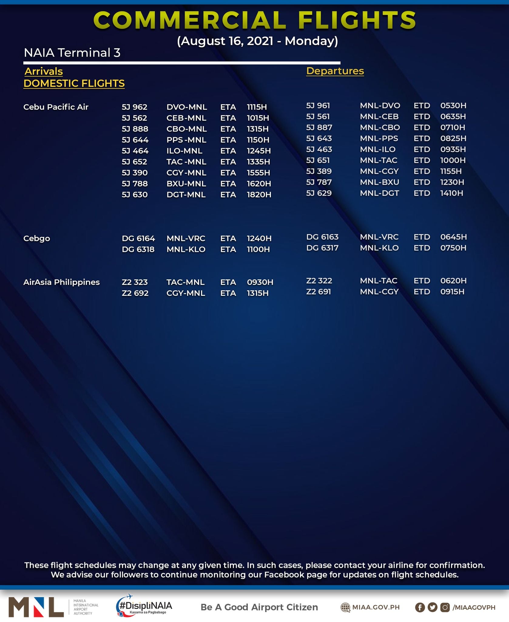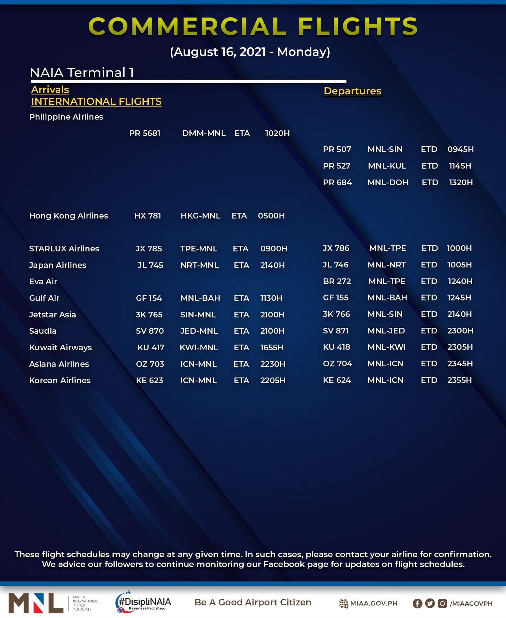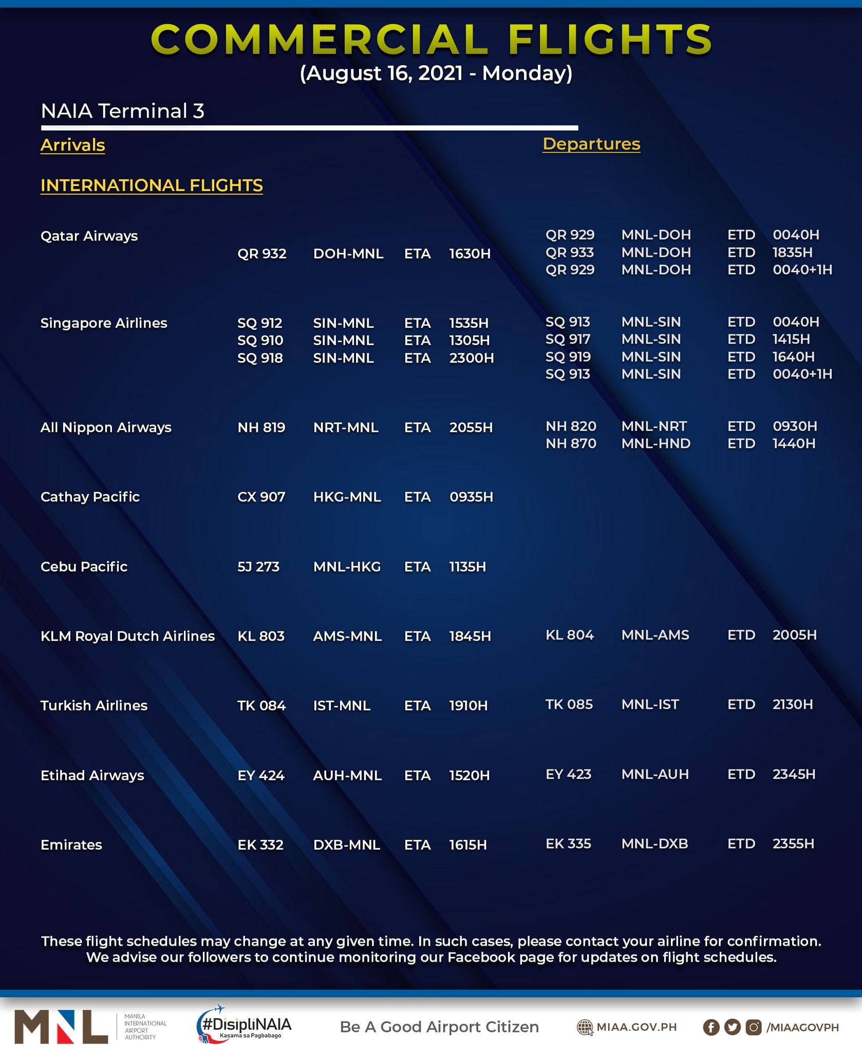 Earlier, MIAA released its list of operational commercial flights for the day: