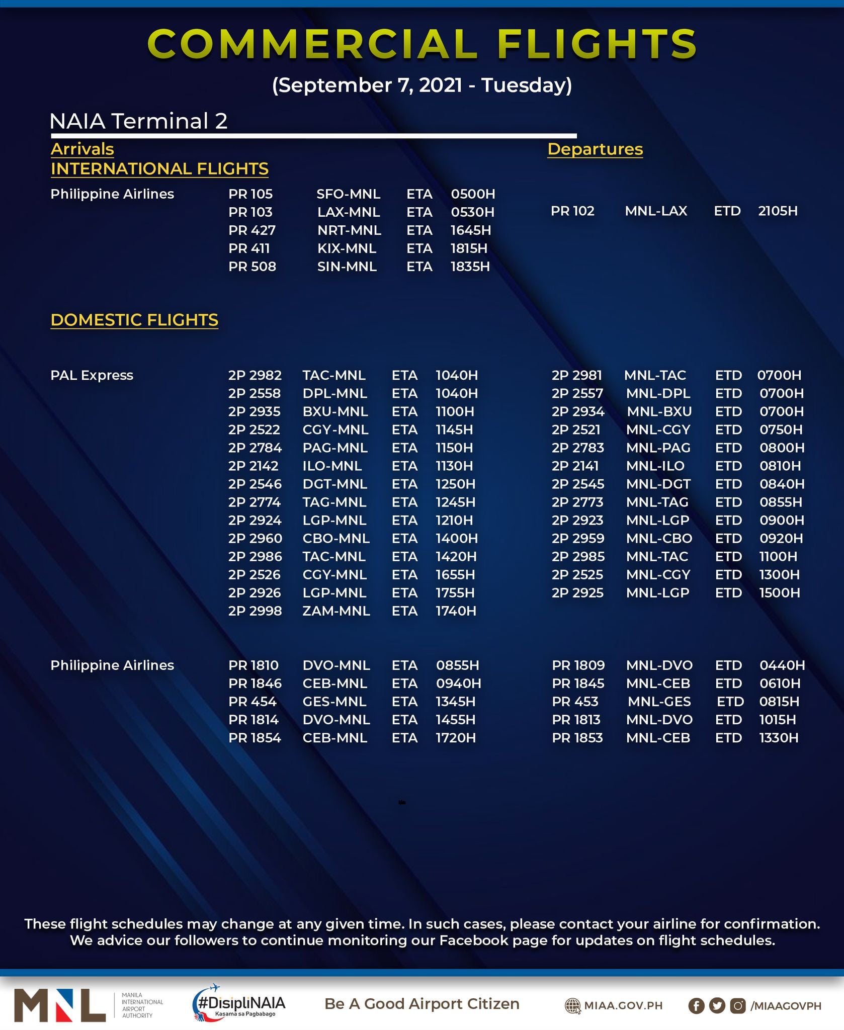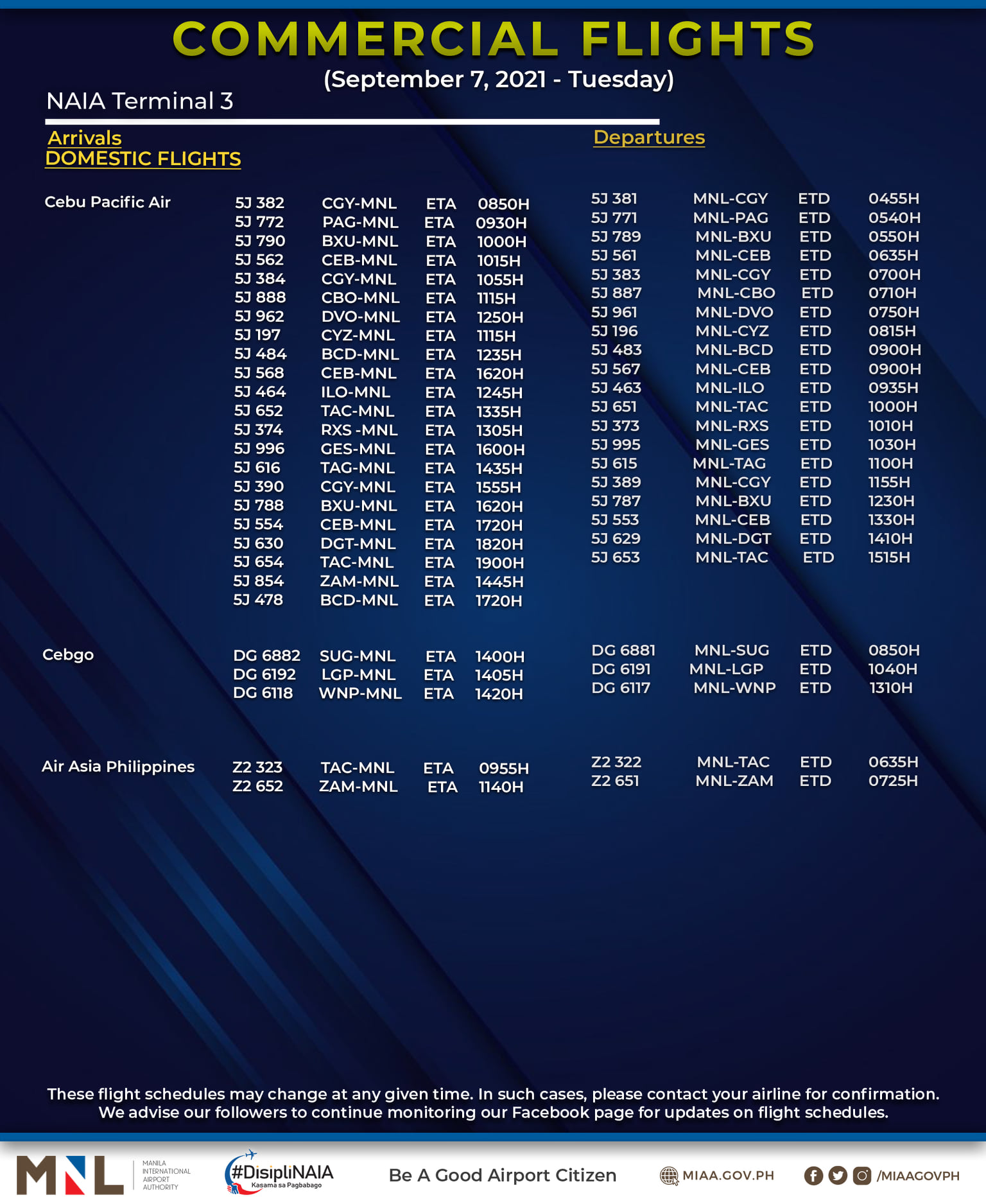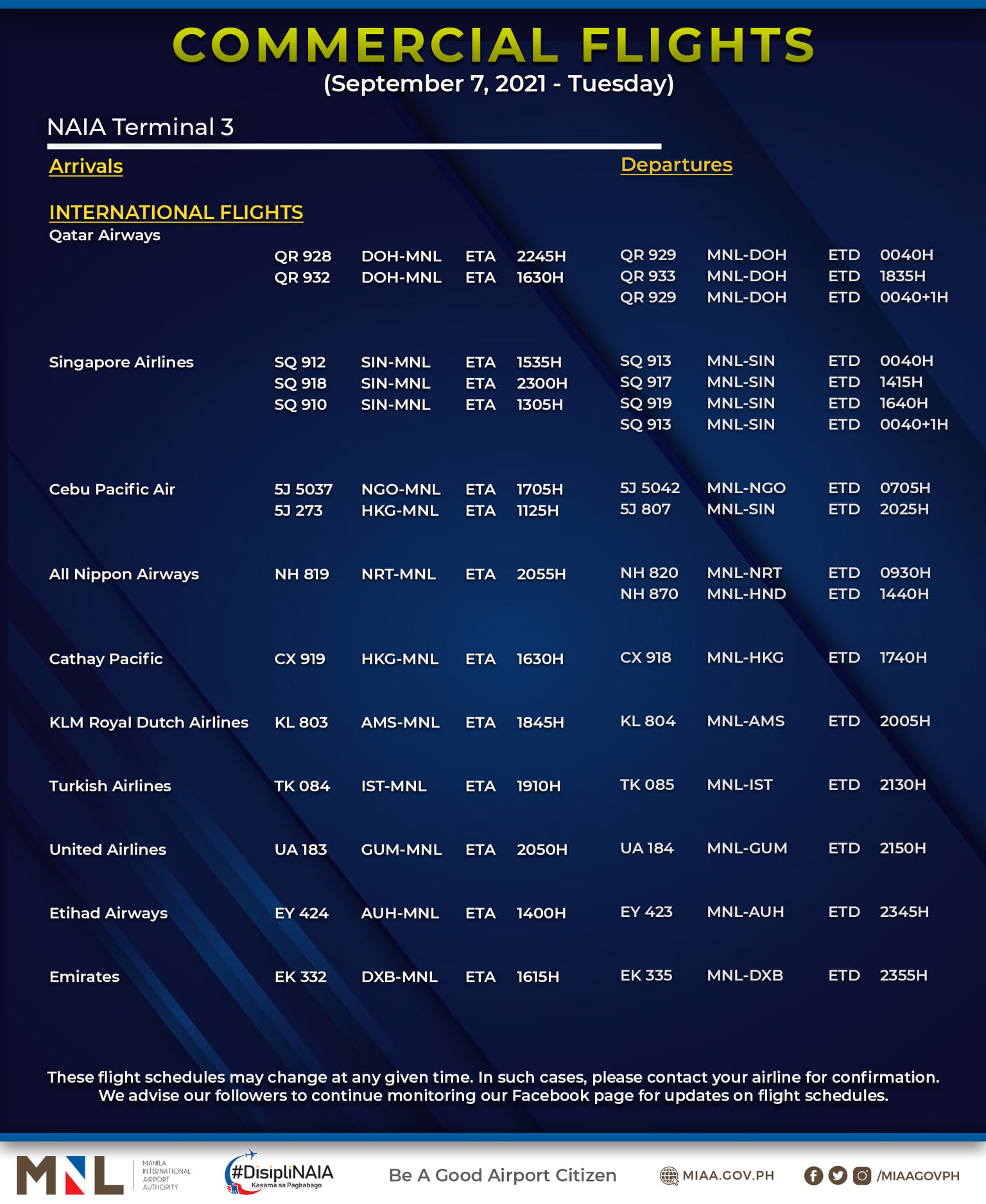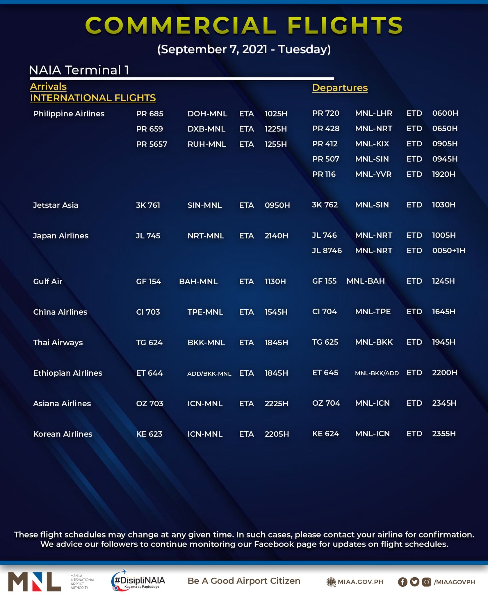 MIAA advised passengers to coordinate with their airlines and confirm their flights first prior to the scheduled travel.