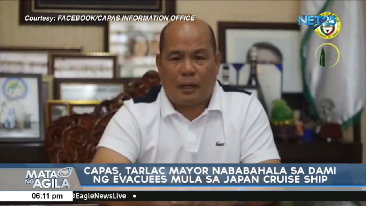 (Eagle News) — The mayor of Capas, Tarlac has expressed apprehension about the quarantine of almost 500 Filipinos from the Japan cruise at the New Clark City Athletes’ Village in his area, saying that the number would be too much to handle and could pose a safety and health risk for his constituents.qu