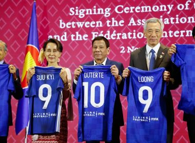(Eagle News) — In this picture provided by the Presidential Communications Operations Office, President Rodrigo Duterte is seen holding up the commemorative T-shirt he received during the signing of the memorandum of understanding between the Association of Southeast Asian Nations and the Fédération Internationale de Football Association (FIFA) on November 2. The MOU was aimed at boosting the sport in the ASEAN countries through FIFA’s Football for Schools program. Duterte is flanked by Myanmar leader […]