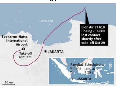 JAKARTA, Indonesia (AFP) — An Indonesian Lion Air plane carrying 188 passengers and crew crashed into the sea Monday, officials said, moments after it had asked to be allowed to return to Jakarta. The jet vanished from radar just 13 minutes after taking off from the Indonesian capital, plunging into the ocean. Search and Rescue Agency spokesman Yusuf Latif said authorities were still searching for the remains of the plane, which lost contact with air […]