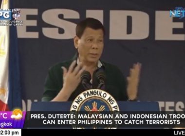 President Rodrigo Duterte has said that Indonesian and Malaysian troops can enter the Philippines when in pursuit of terrorists. The President said all Jakarta and Kuala Lumpur should do was to inform the Armed Forces of the Philippines beforehand. President Duterte said the Philippines was even willing to give the foreign troops assistance. “If it is a joint operation, you bring along my soldiers because that’s what I’ve been saying. Hot pursuit in the seas,” […]