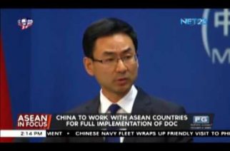 A Chinese Foreign Ministry spokesperson on Tuesday said that China is willing to work with members of the Association of Southeast Asian Nations to fully implement the declaration on the conduct (DOC) of parties in the South China Sea. In his regular press conference, Geng Shuang said that China is also willing to deepen maritime practical cooperation to arrive at a code of conduct or COC “based on consensus at an early date.” On the occasion […]