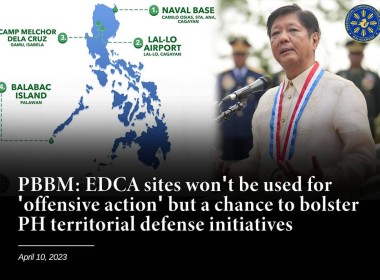 Manila, Philippines | AFP | Monday 4/10/2023 The Philippines will not allow “any offensive actions” from the bases it has opened to US troops, President Ferdinand Marcos said Monday. Manila last week announced the locations of four more military bases it is allowing the US military to use on top of the five agreed on under the 2014 Enhanced Defense Cooperation Agreement, known as EDCA. The deal allows US troops to rotate through and store […]