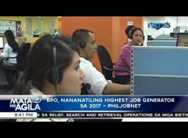 MANILA, Philippines (Eagle News) — Nananatili pa rin ang Business Process Outsourcing (BPO) industry na pinakamalaking job generator ngayong 2017. Ayon sa PhilJobNet, halos nasa 140,000 job vacancies ang naitala mula sa BPO industry ngayong taon. Nanguna sa listahan ng job openings ang posisyon na call center agent kung saan naitala ang pinakamataas na job vacancies mula Agosto hanggang Setyembre. Ito ay umabot sa 21,986 at 21,858. Nasa kabuuang 133,300 call center agent positions ang […]