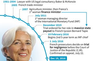 by Aurélia END Clare BYRNE Agence France-Presse PARIS, France (AFP) – A French court on Monday found IMF head Christine Lagarde guilty of negligence over a massive state payout to a tycoon when she was French finance minister but spared her a fine or prison sentence. The ruling was a rare setback in Lagarde’s glittering career but it was not clear how it would affect her position at the International Monetary Fund, whose board was […]