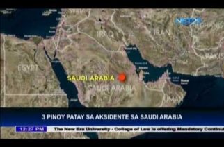 QUEZON CITY, Philippines (Eagle News) — Three Filipinos died after being involved in a car accident in the eastern province of Saudi Arabia. The three were on their way to the United Arab Emirates when their vehicle collided with another. According to the Philippine Consul-General Imelda Panulong, the papers of the three were already being arranged so that their remains could be returned to the Philippines.