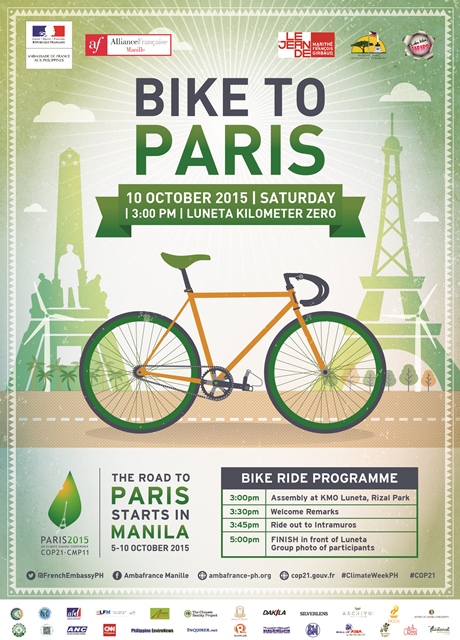 MANILA – The Embassy of France launched last October 5 a week-long event to raise awareness about climate change ahead of the UN Climate Change Conference in Paris later this year. A symbolic bike ride led by the French Embassy and other members of the diplomatic corps will bike from Rizal Park-Intramuros-Rizal Park as a show of solidarity in the fight against climate change. Hundreds of Filipinos are expected to join the ride. VIPs include French […]