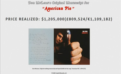 Don McLean’s ‘American Pie’ lyrics sell for $1.2 million