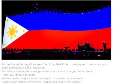(Eagle News) – U2 at the Philippine Arena. The combination sets fans’ imagination on fire as the popular Irish rock band known for its socially relevant songs stages its first ever concert in the country at the 55,000-seater Philippine Arena. With lead vocals Bono, drummer Larry Mullen Jr., bassist Adam Clayton and guitarist “The Edge,” U2 promises a unique visual and aural experience, going by their previous concerts where the latest digital and visual […]