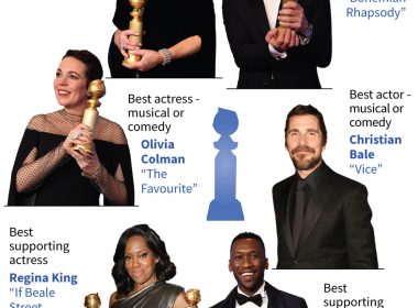 LOS ANGELES, United States (AFP) — “Bohemian Rhapsody” on Sunday pulled a major upset at the Golden Globes, walking away with two top prizes — best drama film and best actor for Rami Malek, who plays Queen frontman Freddie Mercury in the biopic about the iconic band. The film bested early favorite “A Star Is Born,” box office superhero hit “Black Panther,” Spike Lee’s “BlacKkKlansman,” and “If Beale Street Could Talk.” In the best actor […]