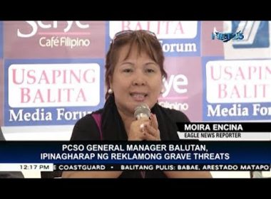 (Eagle News) — Philippine Charity Sweepstakes Office board member Sandra Cam filed grave threats charges against the agency’s general manager Alexander Balutan, whom she accused of being behind the alleged threats she has been receiving since she revealed the conduct of a lavish party in the agency. Cam filed the complaint before the Mandaluyong Prosecutor’s Office. Cam alleged that the first threat she received was on December 27. She said on that day, for the […]