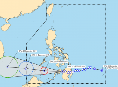 (Eagle News) — “Vinta” continues to intensify as it moves toward southern Palawan on Saturday, the Philippine Atmospheric, Geophysical and Astronomical Services Administration said. In its 8 a.m. bulletin, PAGASA said the center of “Vinta,” now a tropical storm, was seen 210 kilometers west northwest of Zamboanga City, Zamboanga del Sur or 285 kilometers southeast of Puerto Princesa, Palawan. The tropical storm is packing maximum sustained winds of up to 80 kilometers per hour near the […]