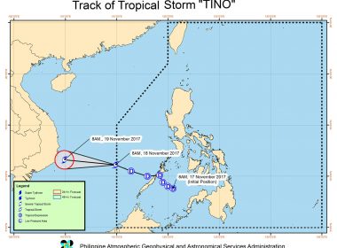 (Eagle News) — “Tino” has developed into a tropical storm, but is now outside the Philippine Area of Responsibility. The Philippine Atmospheric, Geophysical and Astronomical Services Administration said in its 10 a.m. advisory that moderate to heavy rainfall would be felt within the 300-kilometer diameter of the tropical storm. As of 9 a.m., the center of “Tino” was located 70 kilometers east northeast of Pag-asa island in Palawan. “Tino” is packing maximum sustained winds of […]