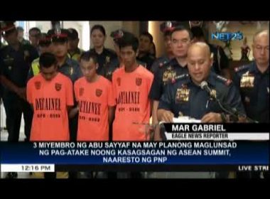(Eagle News) — Three men who police said plotted to attack Metro Manila during the recently concluded Association of Southeast Asian Nations Summit were arrested by authorities in Quezon City, the police said on Friday. Philippine National Police Chief Ronald dela Rosa said suspects Abdulgaffar Jikiri alias Abu Bakar Jikiri, 19; Alim Sabtalin, 19; and Sadam Jhofar, 24; were apprehended by joint Quezon City Police District and National Bureau of Investigation-counter-terrorism division elements in Salam […]