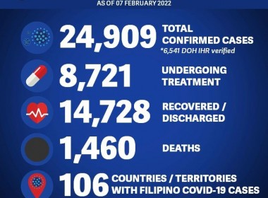 (Eagle News) — COVID-19 cases in the Philippines rose to 3627575 on Thursday, Feb. 10, after the Department of Health reported 4,575 additional cases. According to the DOH, of the total cases, 176 duplicates were removed. Of the total COVID-19 cases, 93,307 are active. Of the active cases, 3316 are asymptomatic, 85244 are mild, 2991 are moderate, 1444 are severe, and 312 are critical. Recoveries rose to 3479485 with the addition of 7504 recoveries. The […]