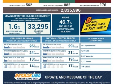 (Eagle News) — COVID-19 cases in the Philippines rose to 2,835,966 after the Department of Health reported 562 additional cases. The additional cases are an increase from the previous 300 plus cases reported in recent days. According to the DOH, of the total cases, 12169 are active. Of these, 851 were asymptomatic, 4838 mild, 3857 were moderate, 2177 severe, and 466 were critical. Recoveries rose to 2,773,891 with the additional 882 recoveries. The COVID-19 death […]