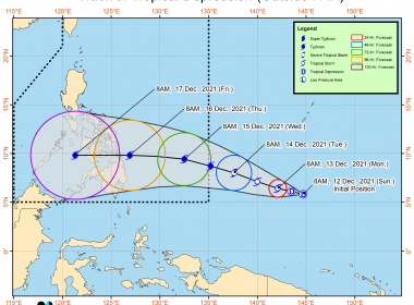 (Eagle News) — The weather disturbance east of Mindanao is expected to enter the Philippine Area of Responsibility on Tuesday evening. According to the Philippine Atmospheric Geophysical and Astronomical Services Administration, “Rai,” now a tropical storm, is expected to enter PAR as a severe tropical storm. Once it enters PAR, it will be named “Odette.” PAGASA said the weather disturbance will begin moving westward over the Philippine Sea on Wednesday morning and may make landfall […]