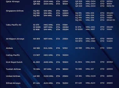(Eagle News) — The Manila International Airport Authority has released its list of operational commercial flights for Wednesday, Dec. 1: Flight schedules may change at any given time. MIAA advised passengers to coordinate with the airlines prior to the scheduled travel as only those with the confirmation will be allowed entry into the airport. The Philippines has suspended its resolution allowing fully-vaccinated foreigners from visa-free countries to enter the country. The Philippines issued the suspension […]