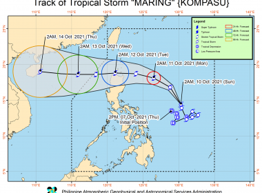 (Eagle News) — Tropical cyclone wind signals remain hoisted over parts of Luzon with Severe Tropical Storm “Maring” about to exit the Philippine Area of Responsibility. The Philippine Atmospheric Geophysical and Astronomical Services Administration said the following areas are under Signal No. 2, as “Maring” moves over 315 kilometers west of Calayan, Cagayan: Batanes Cagayan including Babuyan Islands the northern portion of Isabela (Palanan, Divilacan, Maconacon, Ilagan City, Tumauini, Cabagan, San Pablo, Santa Maria, Santo […]