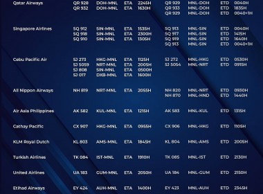 (Eagle News) — The Manila International Airport Authority has released its list of operational commercial flights for Tuesday, Oct. 5: Flight schedules may change at any given time. Travelers were advised to coordinate with their airlines as only those with the confirmation will be allowed entry into the airport. The Palace has said so far, only Bermuda was on the Philippines’ updated red list, which means travel restrictions are imposed on travelers from there. The […]