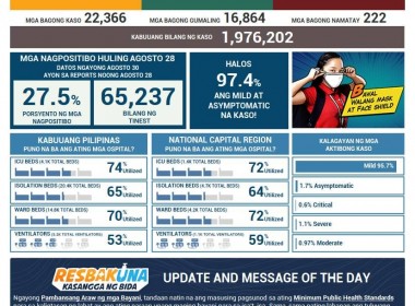 (Eagle News) — COVID-19 cases in the Philippines climbed to 1,976,202 after the Department of Health recorded a record-high 22,366 new COVID-19 infections. According to DOH data, of the total cases, 148594 were active. Of these, 95.7 percent were mild, 1.7 percent asymptomatic, 0.6 percent were critical, 1.1 percent were severe, and 0.97 percent were moderate. Recoveries rose to 1794278 including the additional 16864 recoveries. The COVID-19 death toll is now at 33,330 with the […]