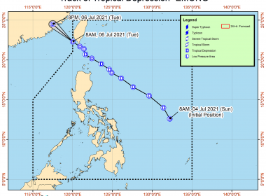 (Eagle News) — Signal No. 1 remains hoisted over Batanes as Tropical Depression “Emong” continues to slow down. According to the Philippine Atmospheric Geophysical and Astronomical Services Administration, the center of Tropical Depression “Emong” was estimated 165 km northwest of Itbayat. It is packing maximum sustained winds of 55 kph near the center, and a gustiness of up to 70 kph. It is moving northwest at 25 kph and is expected to exit the Philippine […]