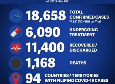 (Eagle News) — Twenty-four more overseas Filipinos have tested positive for COVID-19. The Department of Foreign Affairs said the additional cases pushed the COVID-19 cases among Filipinos abroad to 18658. Four more recoveries also pushed the recovery total to 11,400. Five additional deaths led to an increase in the death toll, now at 1168. According to DFA data, the Middle East and Africa are still the regions with the most COVID-19 cases, recoveries, and deaths […]