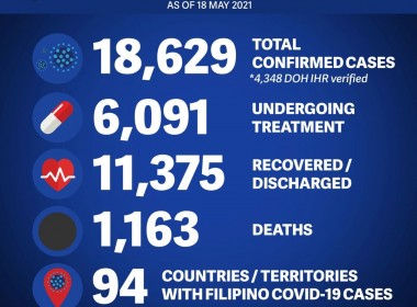 (Eagle News) — Eleven more overseas Filipinos have tested positive for COVID-19. The Department of Foreign Affairs said the additional data pushed the COVID-19 cases among overseas Filipinos to 18629. One more recovery pushed the COVID-19 recoveries among Filipinos abroad to 11375. The death toll is now at 1163, including the additional two deaths. According to the DFA, the Middle East and Africa are still the regions with the most COVID-19 cases, recoveries, and deaths […]