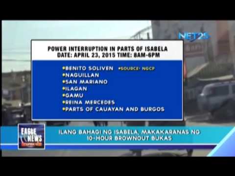 APRIL 22 (Eagle News) — According to the National Grid Corporation of the Philippines, several areas in Isabela will experience 10-hour brownout. (Isabela, Philippines) (Eagle News Service Jay Paul Carlos, Jericho Morales, MRFaith Bonalos)