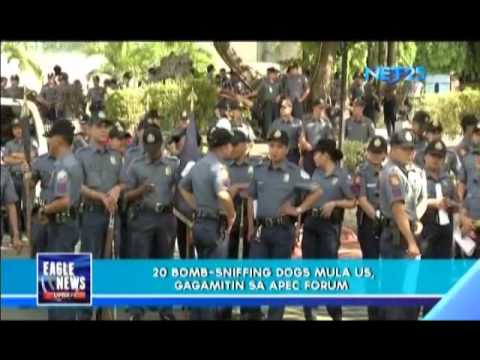 From the United States, 20 bomb-sniffing dogs were sent to the Philippines in preparation of the APEC Summit. Said dogs, together with their handlers, will undergo training for seven weeks.