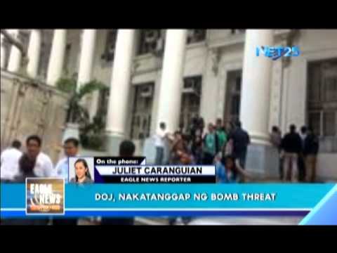 Employees of the Department of Justice evacuate their office building after said department received a bomb threat.