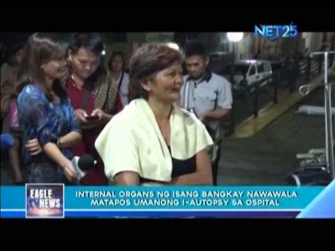 The family of a deceased woman rushed to the Quirino Memorial Medical Center after finding out that her internal organs were replaced by newspaper.