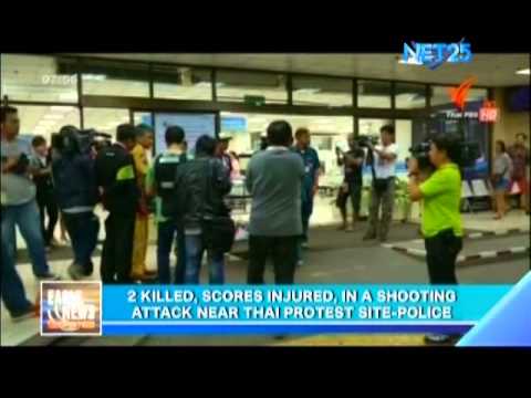 Two people were killed and twenty-two other injured when gunmen opened fire on anti-government protesters in Bangkok, Thailand.