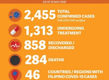(Eagle News) – The Department of Foreign Affairs (DFA) reported 24 new confirmed COVID-19 cases involving overseas Filipinos, bringing the total number of confirmed cases to 2,455 as of Wednesday, May 20. Four new fatalities were also recorded, bringing to 284 the total number of COVID-19 related deaths among overseas Filipinos. Nine new recoveries were recorded as well, with the total now at 858. “[T]he total number of overseas Filipinos who recovered from COVID-19 at […]
