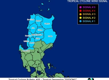 (Eagle News)–Signal No. 1 remains raised over parts of Luzon as Tropical Depression “Dodong” maintains its strength over Cagayan Valley. The Philippine Atmospheric Geophysical and Astronomical Services Administration said the following areas are under the tropical cyclone wind signal: Cagayan Isabela Apayao Kalinga Abra Mountain Province Ifugao Benguet Ilocos Norte Ilocos Sur La Union Northern portion of Pangasinan (San Nicolas, San Manuel, Sison, San Fabian, Pozorrubio, Bolinao, Bani, City of Alaminos, Sual, Labrador, Lingayen, Agno, […]